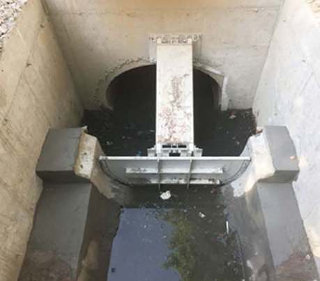 閑置期間,攔蓄門可以鎖定在攔蓄截斷麵的上方,不占用管道任何排水空間。雨季時,攔蓄門保持開啟狀態,不會影響管道的排水功能。斷電時,亦可保持開啟狀態。